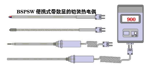 BSPSW帶數顯的鎧裝熱電偶,其中數顯表是無源的,小巧方便,結構緊湊,LED顯示,便于手上操作,而熱電偶同數顯表之間采用小扁插連接,便于熱電偶的更換。