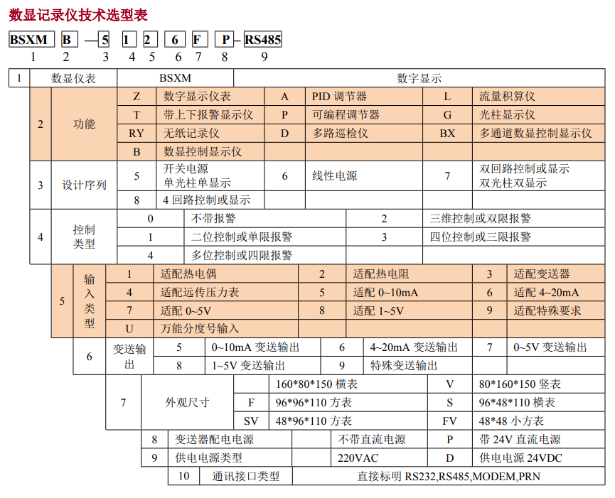 BSXM系列數字顯示控制儀表,是連接熱電偶/阻、壓力變送器、流量計等現場檢測的二次儀表,顯示檢測物質的溫度、壓力、流量、液位、重量等工業數據,并將這些檢測信號經過處理輸送到執行單元供報警,調節或以通訊等方式上傳到計算機或PLC,達到自動控制和管理生產過程的目的。